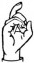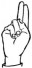 На ћирилици написано БОГИЊА КОРТИ састоји се из 11 слова [?]. Исписано ћириличном једноручном азбуком за глувонеме: